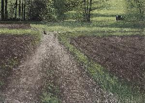 LE CHEMIN, LE LAPIN, LA VACHE, Oil on canvas, 54x75cm, 2018